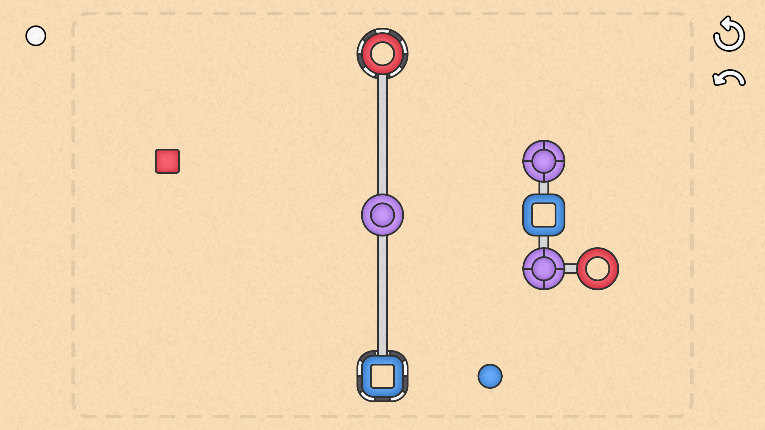 Netoo is a minimalist logic puzzle where you try to place small magnets into their correct spots by rotating transporter magnets with rotator buttons.